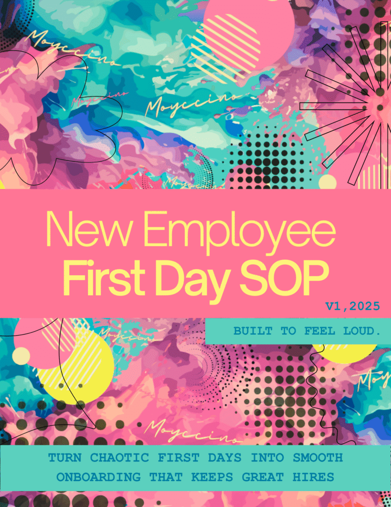 This ready-to-use SOP gives you a clear plan for your new hire’s first day- complete with templates, checklists, and friendly touches that make onboarding feel human again.